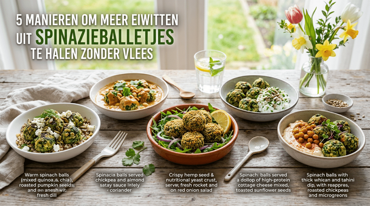 Als liefhebber van groene gerechten ben ik altijd op zoek naar manieren om mijn vegetarische maaltijden voedzamer te maken. Spinazieballetjes zijn zo’n favoriet van mij, maar soms wil ik graag wat extra eiwitten toevoegen zonder vlees te gebruiken. Daarom deel ik vandaag vijf eenvoudige en smakelijke manieren om meer eiwitten uit spinazieballetjes te halen, perfect voor het voorjaar!